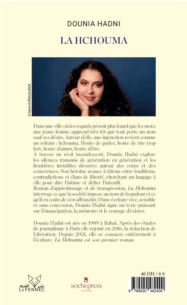 Roman d’apprentissage et de transgression, La Hchouma interroge ce que la société impose au nom de la pudeur et ce qu’il en coûte de s’en affranchir. D’une écriture vive, sensible et sans concession, Dounia Hadni signe un texte puissant sur l’émancipation, la mémoire et le courage d’exister.