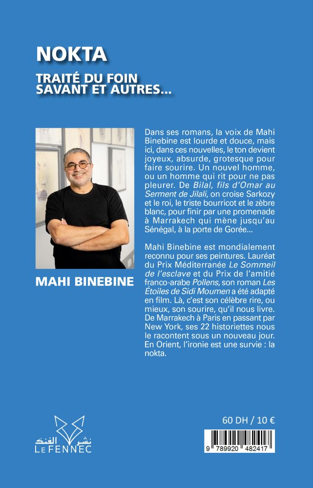 Mahi Binebine est mondialement reconnu pour ses peintures. Lauréat du Prix Méditerranée Le Sommeil de l’esclave et du Prix de l’amitié franco-arabe Pollens, son roman Les Étoiles de Sidi Moumen a été adapté en film. Là, c’est son célèbre rire, ou mieux, son sourire, qu’il nous livre. De Marrakech à Paris en passant par New York, ses 22 historiettes nous le racontent sous un nouveau jour. En Orient, l’ironie est une survie : la nokta.